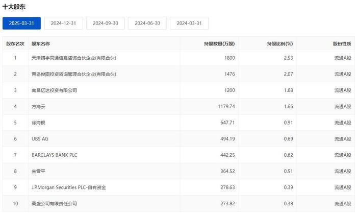 目前新动力股权结构较为分散,单一股东持有公司权益的比例均未超过公司总股本的30%。截至2025年3月31日,天津腾宇持有新动力股票数量为1800万股,持股比例为2.53%,是新动力第一大表决权股东。